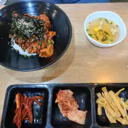 So the owner of the dorm ordered bibimbap and soft tofu stew, and my friend ordered pork rice bowl. They both cost 5,500 won.