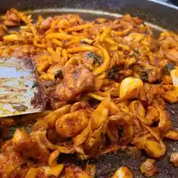 We order Dakgalbi in the national combination of 2 2 2. 222 means 2 servings of Dakgalbi, 2 udon noodles, and 2 fried rice. There is nothing we can do since there are two of us.