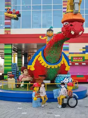 When you enter Legoland, the place you see on the left is the Big Shop^^ The kids are happily posing in front of the Lego dinosaur in front of the Big Shop. Legoland is currently closed, but if you stay at the Legoland Hotel, you can visit the Big Shop inside Legoland. However, it is only open from 10:00 to 16:00, so you have to visit at the right time^^
