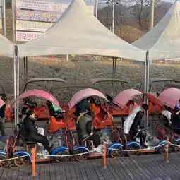 You can ride the rail bike at the rail bike boarding area located right next to Kim Yu-jeong Station and enjoy the natural scenery of Chuncheon.