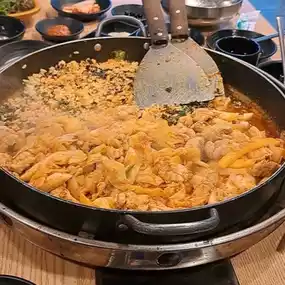 ❤️ I share a Korean locals eating, they will provide a large nest of iron plate, first all chicken is raw, we need to fry themselves, fried to half cooked to add Korean spicy sauce and fry If you are not used to eating, you can serve it with rice 🥰🥰 There is a bowl of white rice for each person ⭐⭐⭐⭐