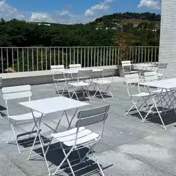 The rooftop terrace seats are so pretty, so when the weather is nice, it's the best combination to eat coffee and soccer ball bread on the terrace!👍