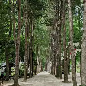 Nami Island is a crescent-shaped island formed by the flooding of the river when the Cheongpyeong Reservoir was built in 1944. Many South Korean idol dramas have been filmed here. The most well-known one is "Winter Sonata" starring Bae Yong-joon and Choi Ji-woo in 2002.