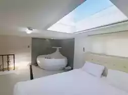 The ceiling of the duplex bedroom has a sky window system that allows you to look at the sky while lying in bed, so you can see the twinkling stars at night. Emotional Pension❤️