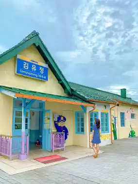 It's the famous Kim Yu-jeong Station. It's a place full of cute and lovely photo zones inside the train station.