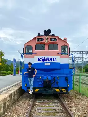 In particular, you can take pictures in front of the Korail train