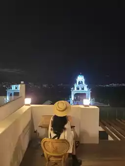 There are many places with pretty indoor spaces, but the Santorini sculpture seen from the 2nd floor