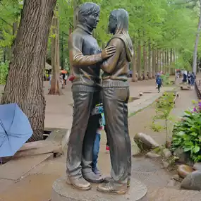 The highlight was finding the iconic “Winter Sonata” statues. Standing by the romantic figures, I couldn’t help but feel the nostalgia of the famous K-drama. I snapped some photos and enjoyed the dreamy vibe.