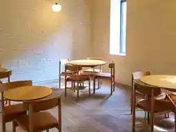 Have a simple sandwich and a cup of coffee at a cafe with a garden view