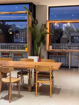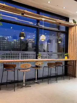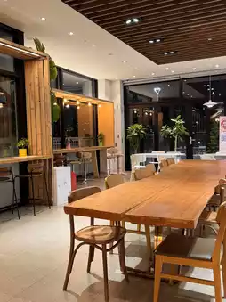 Store layout: A multi-purpose space featuring a bakery and cafe on the first floor, a bakery factory on the second floor, offices on the third floor, and a rooftop cafe on the fourth floor. Tables and cafe seating are also available.