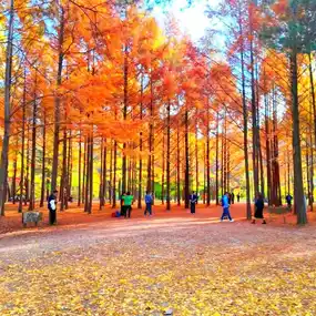 In autumn, Nami Island is like a painting, with its golden ginkgo tree-lined paths resembling a carpet of gold and a romantic atmosphere that is simply enchanting. The best time to see the autumn foliage is from late October to mid-November. If departing from Seoul, you can take the Gyeongchun Line subway to "Nami Island Station," walk about 10 minutes to the pier, and then take a 5-minute ferry ride to the island. Alternatively, you can take a bus from the East Seoul Bus Terminal to the Nami Island entrance. On the island, you can rent a bicycle or explore on foot. A recommended route is Entrance Plaza → Ginkgo Tree Lane → Autumn Foliage Tunnel → Art Zone → Lakeside Path. Don't miss the filming location of "Winter Sonata" and the Garden of Letters. Visiting in the morning is recommended, and bringing light snacks for a picnic allows you to enjoy the tranquility of autumn. The entrance fee, which includes the ferry ride, is about 15,000 won. Wear comfortable shoes and pay attention to the ferry schedule, as the last ferry departs around 6:00 PM. The autumn scenery of Nami Island is poetic, and spending a day leisurely exploring feels like stepping into a painting.