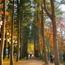 A beautiful island to visit in all four seasons. You will also meet our Merlion there at Nami Island. There are ferries to bring you to Nami Island and they have a timetable. If you are feeling brave, you can also pay a little bit extra to take the zipline to Nami Island. There will be a basket under you for you to place your belongings. No loose items but you can strap on your own camera. There is this pathway at Nami Island with tall trees lining up on both sides of the pathway. This is also a famous scene in one of the popular K dramas. You will get to take your best photo right at this pathway.