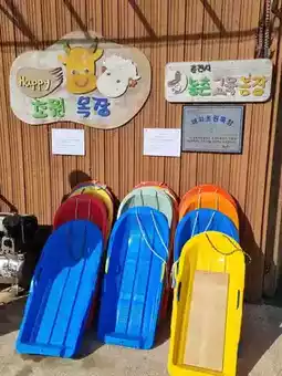 HappyChoWonRanch is a great snowflower travel destination for kids. You can see various animals such as sheep, cows, rabbits, and horses, and you can ride a sled for free during the winter season. It's a fulfilling travel destination with lots to do and the snow-covered winter ranch scenery is beautiful, so the admission fee is worth it. A must-visit course for those looking for a trip to Gangwon-do and Chuncheon~ Especially recommended for family trips.
