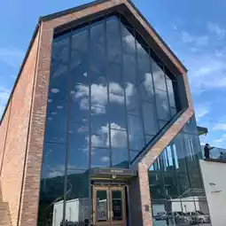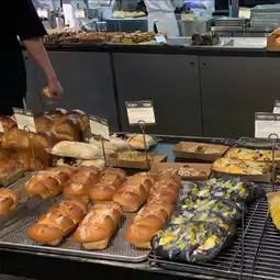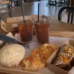 The cafe's full name is Cafe de 220 Volt! It's a huge, three-story building filled with bakeries baking their own bread.🥐 The weather was perfect, so I could see the clear sky and greenery right in front of me. :) And the clouds reflected on the building's exterior windows were really pretty!