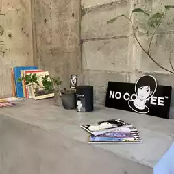 NO COFFEE Cafe has a grey interior and a cold atmosphere.