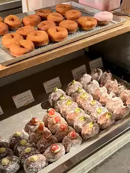 When you enter the store, you'll see about 40 kinds of fresh donuts lined up in a stylish antique interior and wonderful decorations. There is a wide variety, including simple donuts, sweet donuts, and savory donuts.