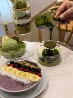 Matcha pudding and vanilla gelato