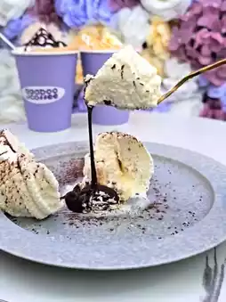 White chocolate mousse with chocolate sauce