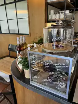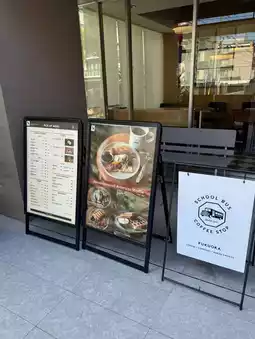 Enjoy freshly made-to-order American waffles! SCHOOL BUS COFFEE STOP FUKUOKA is a modern American-style café with a touch of old-school charm. Waffles are freshly baked for each order and are available all day from 8:00 AM to 5:00 PM. Plus, you can enjoy a complimentary drink set with an Americano or juice! Specialty drinks like lattes and flat whites can be added to the set for just an additional 100–150 yen.