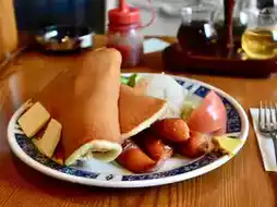 I tried their sausage pancakes, which were a fun twist on the classic pancake dish. The pancakes were fluffy, the sausage added a nice savory contrast, and everything was served with just the right amount of butter and syrup.