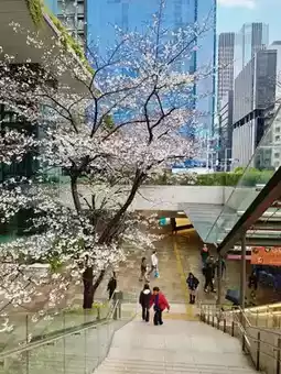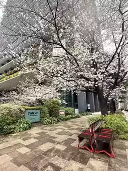 The contrast between the urban skyscrapers and delicate cherry blossoms makes for a stunning view. Whether you’re grabbing a coffee, taking a stroll, or just soaking in the atmosphere, this hidden gem is definitely worth a visit!