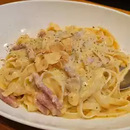 Compared to other dishes, the carbonara had a more moderate amount of garlic.