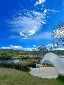 There are also many man-made landscapes here, combined with natural scenery, very suitable for wedding photography. The breeze blows through the leaves, the water surface sparkles, white buildings, blue sky, and the whole grassland, making wedding photos more possible
