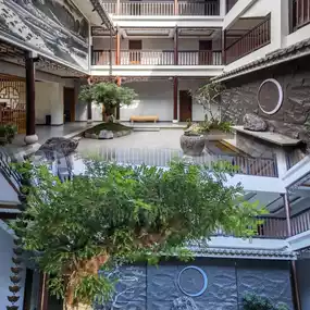 The design ingeniously integrates Yi ethnic totems, silver ornaments, and more. Every detail showcases the unique charm of Yi culture. There's a courtyard with a central atrium, perfect for stargazing on clear nights. I love it! The yard features beautifully shaped fragrantwood trees and a mirror-like water tank, reflecting the homestay's meticulous care. It's comfortable, serene, and cozy.