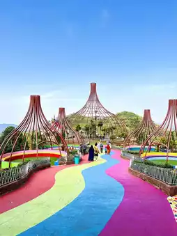 Florawisata D'Castello has several other Instagramable photo spots, including a large Mickey Mouse statue, terraces that grow many colorful flowers, and caged buildings. Florawisata D'Castello also has a food court available for visitors. The menu is quite complete, from light meals to heavy meals.