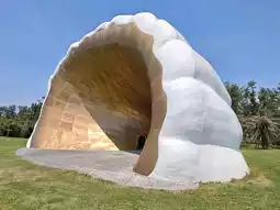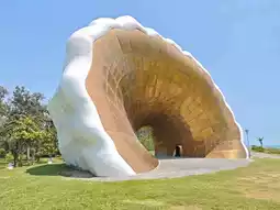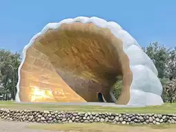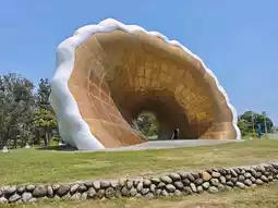 Besides the winding coastline of Cijin, Kaohsiung, lies a landmark imbued with artistic and acoustic charm: the Cijin Sea Pearl. This public art installation, created by Sea Pearl Art, is not only a popular photo spot but also a unique space where you can immerse yourself in the sounds of nature. The Cijin Sea Pearl's design draws inspiration from common ocean shells. Its massive, curved form resembles a shell magnified hundreds of times, lying on the beach. Its pure white exterior contrasts strikingly with the blue sky and sea, presenting a different aesthetic both during clear days and at sunset. In addition to its unique shell shape, the Sea Pearl's surface is covered with holes of varying sizes. These holes are not only part of its design but also key to its acoustic function. When the sea breeze blows, you hear the whirring sound of wind chimes, and when the waves crash against the shore, you feel the deep, rhythmic sound of the tide. These sounds are amplified by the Sea Pearl's design, creating an acoustic experience that evokes the feeling of being transported to the depths of the ocean. Here, you can not only enjoy the scenery but also experience the beauty of nature with your ears. Cijin Sea Pearl is not only a tourist landmark, but also a pearl that embodies local culture and artistic aesthetics. Whether it is bathed in sunshine during the day or shining with lights at night, it quietly guards the coast of Cijin, inviting every traveler to stop here and experience the charm of Kaohsiung's ocean.