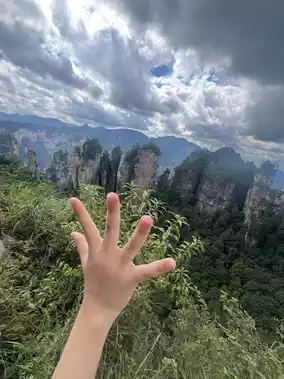 For our trip to Zhangjiajie City, we booked a tour with a local travel agency. Our guide, a young woman, accompanied us throughout the scenic excursion, providing exceptional service. Zhangjiajie National Forest Park is a magnificent natural wonder, especially the Qiankun Pillars in Yuanjiajie, which seem like something from the world of "Avatar." Amidst the swirling clouds and mist, it seemed as if floating mountains would rise at any moment, and blue-skinned people would soar on dragons.