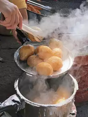 What radish silk cakes, braised mountain eggs, salt potatoes, roasted sweet potato sticks on the small stall