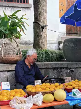 An ancient village, an ancient road, both sides are residents selling local specialties. The villagers say that there will be more stalls on weekends