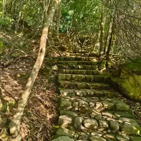 The weather forecast is generally inaccurate during the rainy season in the south of the Yangtze River. I thought it would rain, but the day before the festival turned out to be sunny, so I decided to take this cool path. The stream meandered along the way, flanked by shady green trees, making the climb quite pleasant.