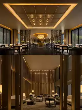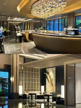 Stepping into the hotel, it feels like you have strayed into a landscape painting from the Song Dynasty. It is located in Baoyun Lake, Binhai New City, Qianwan New Area, Ningbo. The surrounding natural scenery is beautiful. Not far away is the Hangzhou Bay National Wetland Park. You can stroll there in your spare time and encounter various migratory birds 🐤 and feel the vitality of nature. The hotel covers an area of 72,000 square meters. It is carefully carved with the "suppressing scenery, separating scenery, facing scenery, framing scenery, and leaking scenery" techniques of Song Dynasty classical gardens. The three-courtyard space ritual system, every landscape and every corridor are full of the elegance and tranquility of Song Dynasty culture. Walking in it is like reading a vivid historical and cultural book.