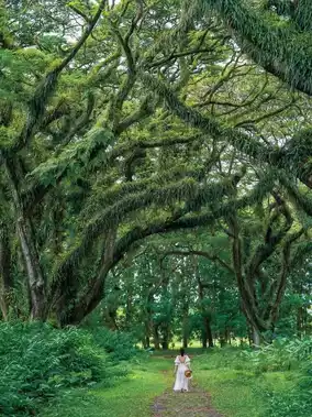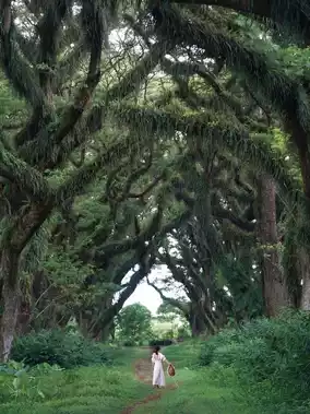 The soul of this place lies in the trembesi and banyan trees over a hundred years old, standing tall and majestic, their thick branches wrapped in dense moss and vines, resembling a natural sculpture garden. Sunlight struggles to penetrate the layered canopy, casting mottled shadows on the ground that flow like a dynamic "magic circle" with the breeze. Standing beneath these giant trees, the contrast between human smallness and nature’s grandeur is striking, and every snapshot looks like it has a cinematic filter.