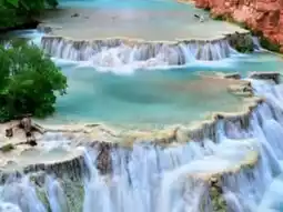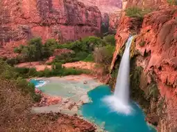 Havasu Falls is a stunning waterfall located in the Havasupai Indian Reservation in Arizona, USA. Known for its turquoise blue waters and dramatic drop, it is one of the most beautiful and photographed waterfalls in the world. The falls are part of Havasu Creek, which flows into the Grand Canyon. Bring a lot of water and wear comfortable shoes. Enjoy your trip!