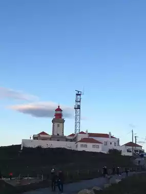 At the edge of the cliff stands the red-roofed Cabo da Roca lighthouse. Before the discovery that the Earth is round, people believed this was the end of the world. The dramatic cliffs meeting the ocean create a breathtaking view.