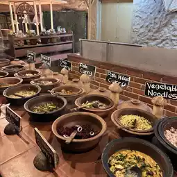 The extensive curry selection, ranging from fish to jackfruit, offers a delightful taste of local flavors.
