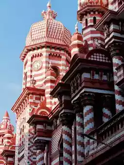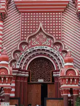 One of Colombo’s most iconic landmarks, the Jami Ul-Alfar Mosque—often called the Red Mosque—stands out with its striking red-and-white candy-striped façade. Built in 1909, it is still an active place of worship and a vibrant symbol of the city’s multicultural heritage. Its unique architecture, with domes and minarets, makes it one of the most photographed spots in Sri Lanka.
