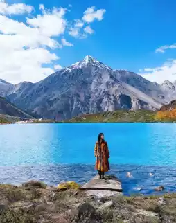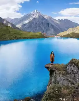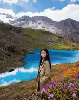 Whether it's sunny or rainy, the lake water displays a dreamy azure blue, with clarity that will redefine your understanding of "pure"! Standing by the lake, with towering snowy mountains and a deep blue sky behind you, every shot is a masterpiece 📸 (wearing bright-colored clothes is recommended for better photos)