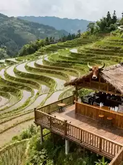 - Rest at the hillside cattle shed, not a trendy coffee shop! It’s a farmer’s field-watching shed. Ask the field-watching uncle for a cup of roasted tea, sit on the wooden bench watching egrets fly over the terraces, more down-to-earth than a coffee shop.