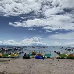 The appearance of the lake, which blends in with the high sky of Copacabana, Bolivia,