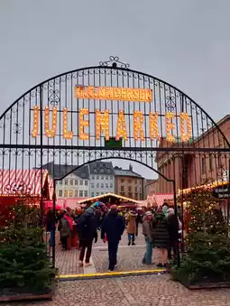 No trip to Copenhagen is complete without a visit to Nyhavn, where the colorful harbor houses look even dreamier adorned with holiday decorations. The Christmas market here is small but oh-so-charming, with the smell of roasted almonds wafting through the air and carolers serenading the crowd.