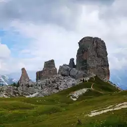 The journey to Cinque Torri begins in the nearby town of Cortina d'Ampezzo. From here, you can take a bus to Passo Giau, serving as the starting point for the hike. The route is accessible from June to October, depending on snow conditions.