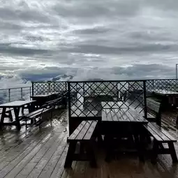 The view of Cinque Torri from the deck of the Lagazuoi mountain hut is another