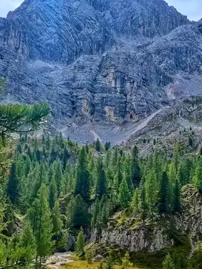 The journey itself is pure adventure — a scenic 6 km hike through lush pine woods, rocky trails, and mountain ridges that reward you with stunning views of Mount Sorapis reflected in the lake’s mirror-like surface. 🌲🌄