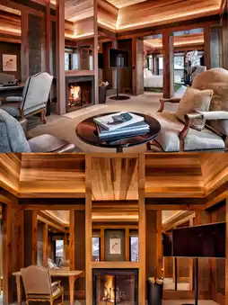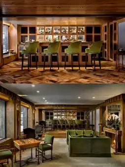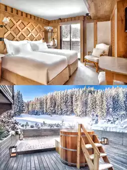 The hotel has 31 rooms and suites, all with red pine floors, very spacious and fragrant. Some rooms also have balconies and outdoor hot tubs, and the floor-to-ceiling windows offer stunning views of the Alps and the silver forest.