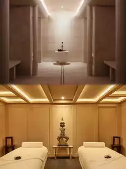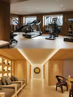 💆 The two-floor spa features an indoor pool, Turkish steam bath, sauna, and five treatment rooms. Here, guests can enjoy Alpine-inspired massages, such as dry brushing to boost circulation and hot stone oil massages to relieve post-ski fatigue.
