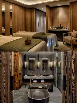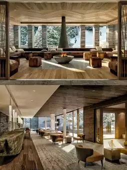 The property features 53 exquisitely designed residential-style rooms, where premium furnishings and facilities are crafted by top designers with interiors inspired by the local Alpine environment. Most apartments boast terraces with swing chairs, private cinema rooms, and traditional hammams.